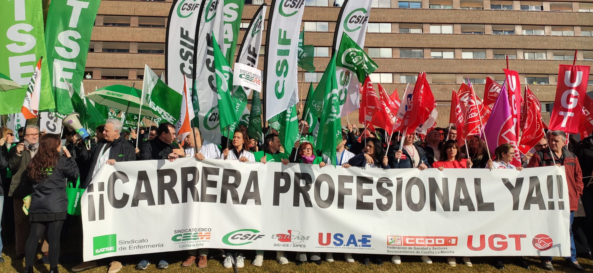 Durante la concentración, el portavoz del Sindicato de Enfermería, SATSE, en Castilla-La Mancha, Ángel García, señaló a los medios de comunicación que la carrera profesional es un derecho que tienen todos los trabajadores del sector sanitario e insistió en el hecho de que Castilla-La Mancha es la única comunidad autónoma que todavía no ha recuperado la carrera profesional, 14 años después de su suspensión temporal.